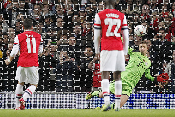 В рамках 1/8 финала Лиги Чемпионов встретились команды «Бавария» и «Арсенал». Игра проходила на домашнем стадионе канониров — Emirates Stadium.
