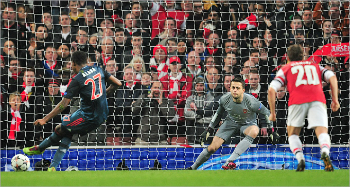Возможно, решающим моментом встречи становится удаление вратаря Арсенала — Войцеха Щенсны, после которого был назначен пенальти в ворота подопечных Арсена Венгера. На ворота встает Лукаш Фабьянский, заменив полевого игрока — Касорлу. Пенальти решился бить Алаба: он взял небольшой разбег и пробил в правый от вратаря угол — штанга спасает Арсенал.