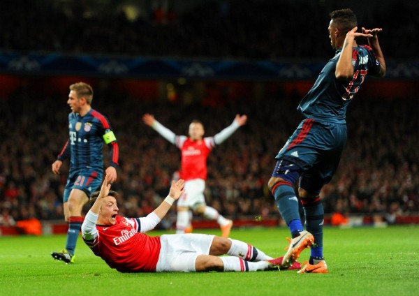 Встреча с первых минут стартовала на очень быстрых скоростях, в связи с чем, уже на 8-ой минуте в ворота подопечных Хосепа Гвардиолы после нарушения Боатенга в штрафной зоне был назначен 11-метровый удар: к точке подошел Озил — Нойер отразил мяч, который был пущен практически по центру. Стоит сказать, что Бавария в первые 15 минут была просто смята лондонским клубом — можно отметить лишь опасный удар Крооса на 3-ей минуте матче.