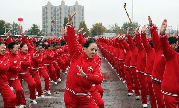В китайской провинции Хэбэй в городе Сянхэ пенсионеры решили устроить небольшой флэшмоб. Одевшись в одинаковые красные костюмы, 18 431 пенсионеров выстроились в ряды по 100 человек и довольно синхронно сплясали под песню Little Apple.