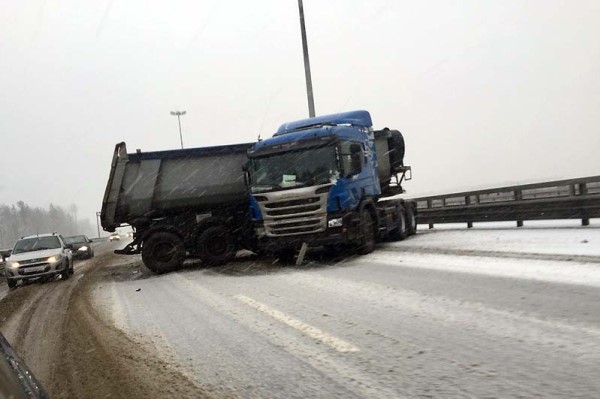 Авария случилась около полудня, предположительно, из-за сложных погодным условий — гололед и снегопад. Водители грузовиков, двигавшихся в направлении трассы «Скандинавия», потеряли управление, машины занесло и произошло столкновение двух фур.