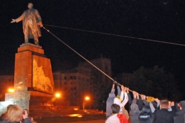 Напомним, что 28 сентября праворадикальными активистами был снесен памятник Ленину в Харькове, несмотря на то, что за полчаса до этого происшествия губернатор Харьковской области Балута опубликовал распоряжение о демонтаже памятника.