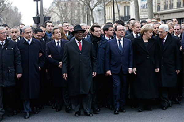 Участие в парижском марше приняли лидеры и представители ряда стран. Россию на марше против терроризма представлял министр иностранных дел Сергей Лавров, США — помощник государственного секретаря Виктория Нуланд и посол Джейн Хартли. Также в Париже был генпрокурор США Эрик Холдер, однако он к маршу не присоединился.