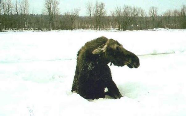 Выбравшись на поверхность, лося освободили, и он тут же умчался в лесной массив.