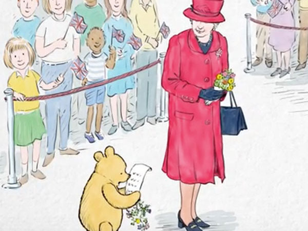 К 90-летнему юбилею Винни-Пуха и королевы Великобритании вышла новая детская книга «Винни-Пух и королевский день рождения». Ее создали писатель Джейн Риордан и художник Марк Бергесс.