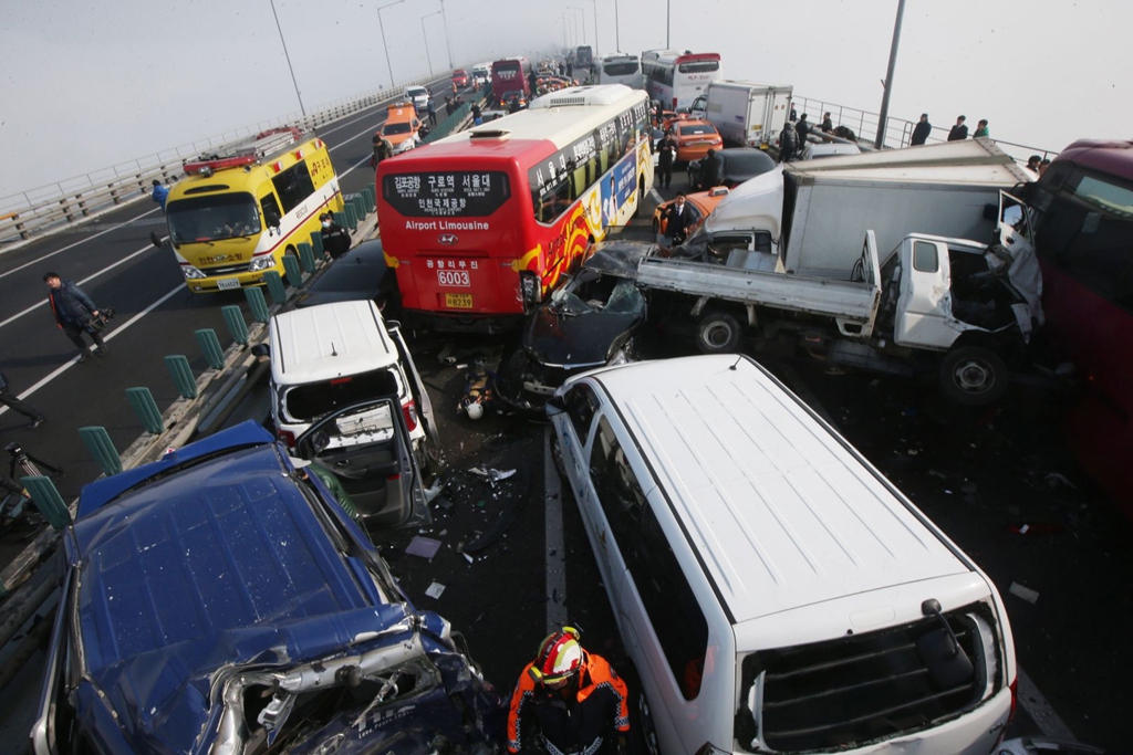 На территории Южной Кореи произошла масштабная авария с участием сразу шести десятков автомобилей.